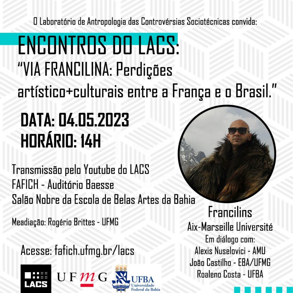 O Laboratório de Antropologia das Controvérsias Sociotécnicas da UFMG convida a todas e todos para o próximo Encontro do LACS! Este é um espaço de conversa, encontros e trocas entre o LACS e diversas pesquisadoras(es) convidadas(os). No próximo dia 04/05 receberemos para essa conversa Francilins (Aix-Marseille Université).