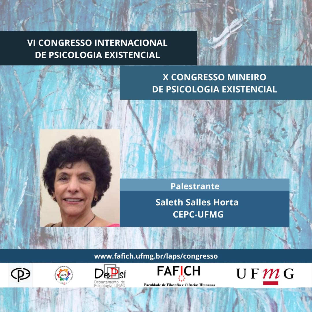 Palestrante do VI Congresso Internacional de Psicologia Existencial Dra. Saleth Salles Horta do Curso de Especialização em Psicologia Clínica da UFMG