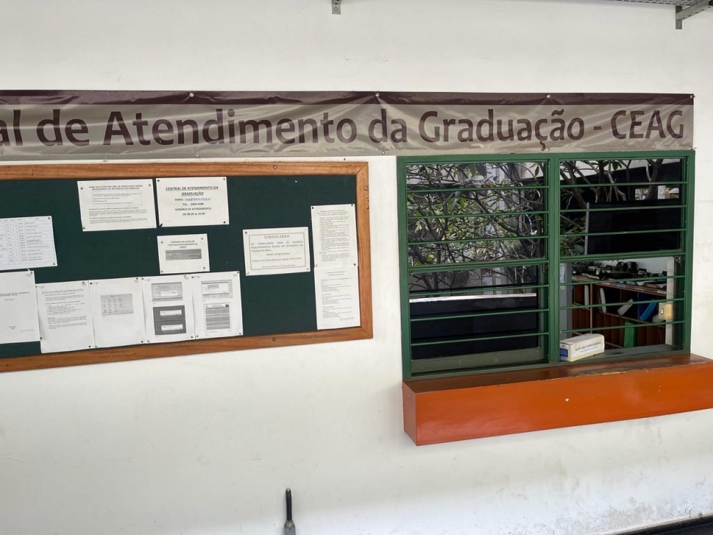 Durante o período letivo, a Central de Atendimento ao Aluno de Graduação funciona ininterruptamente das 8:00 às 22 horas, na sala F2003 (2º andar da FAFICH).